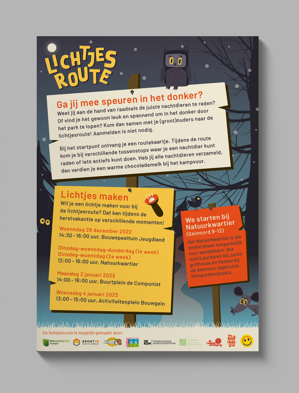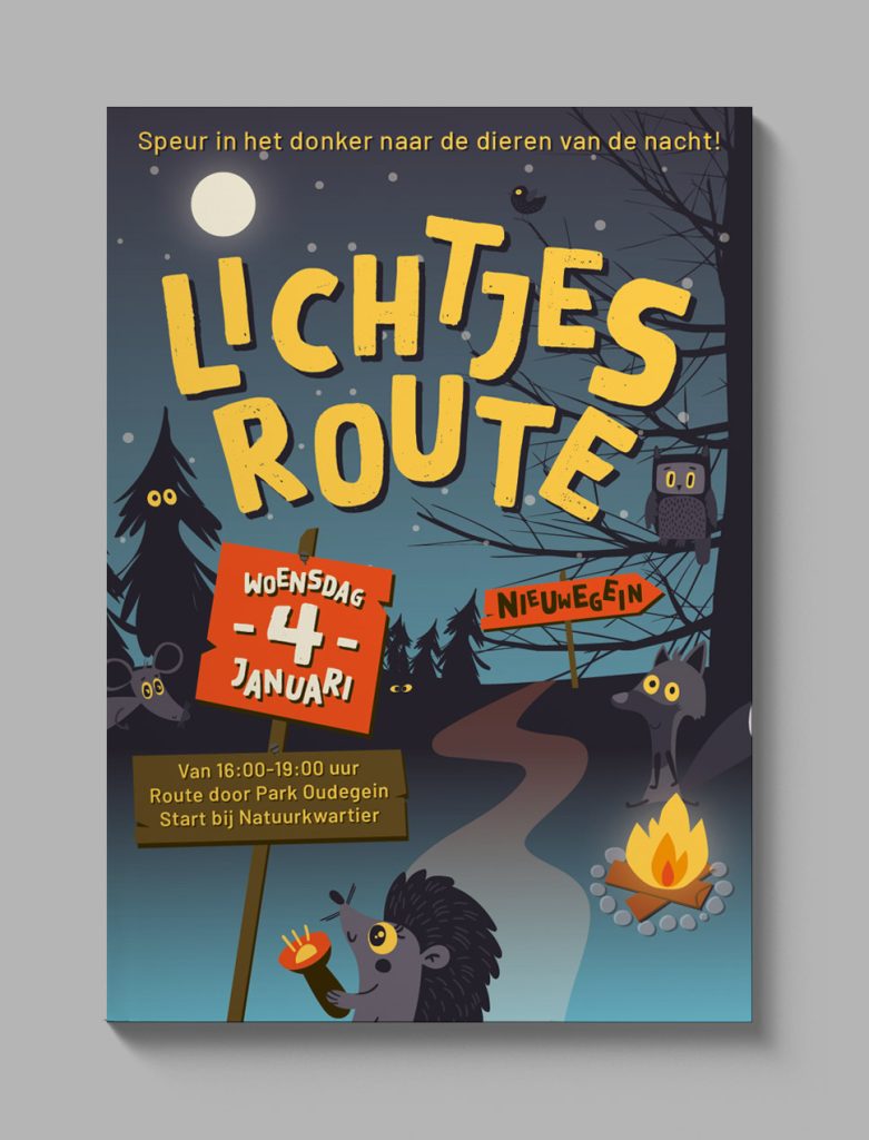 Flyer voor kinderactiviteiten tijdens de Lichtjesroute in de kerstvakantie in Nieuwegein.
